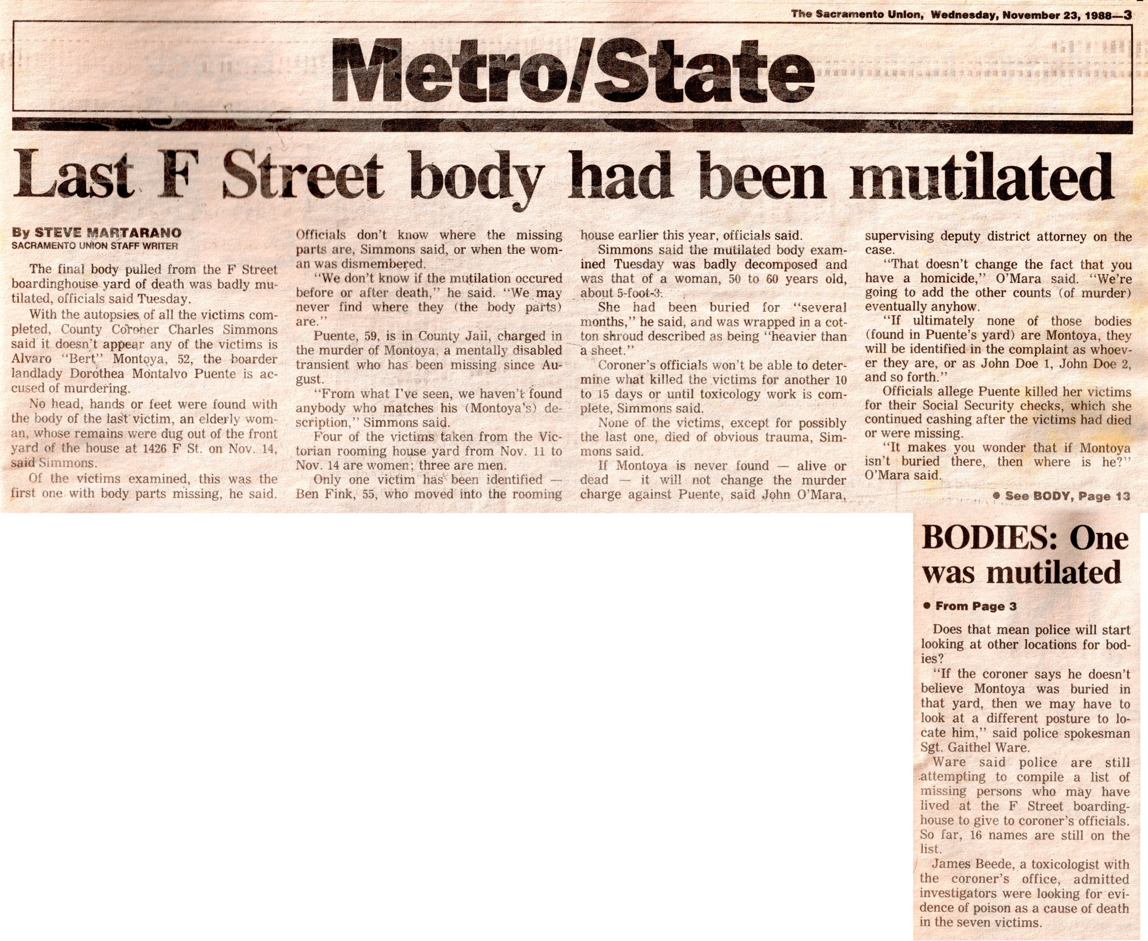 Body was Mutilated/Sacramento Union/Nov. 23, 1988