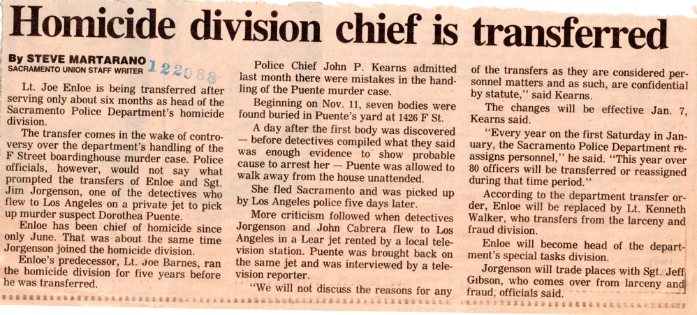Homicide Chief Transferred/Sacramento Union/Dec. 20, 1988