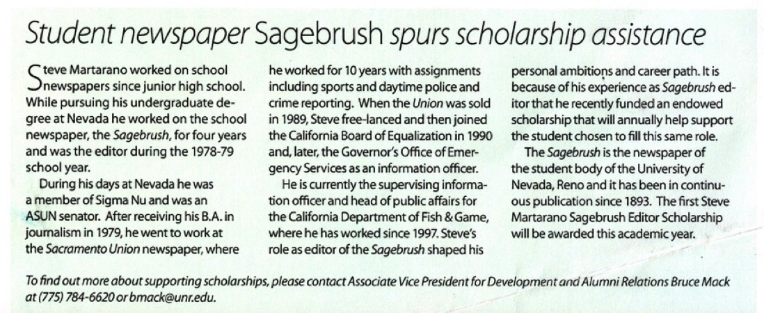 Sagebrush Scholarship/Nevada Silver & Blue/Fall 2006