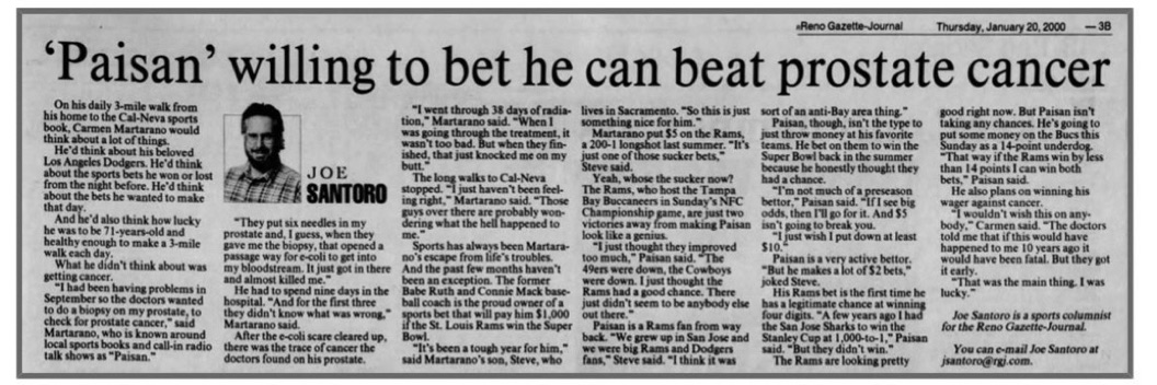 Paisan Willing to Bet/Reno Gazette-Journal/January 20, 2000