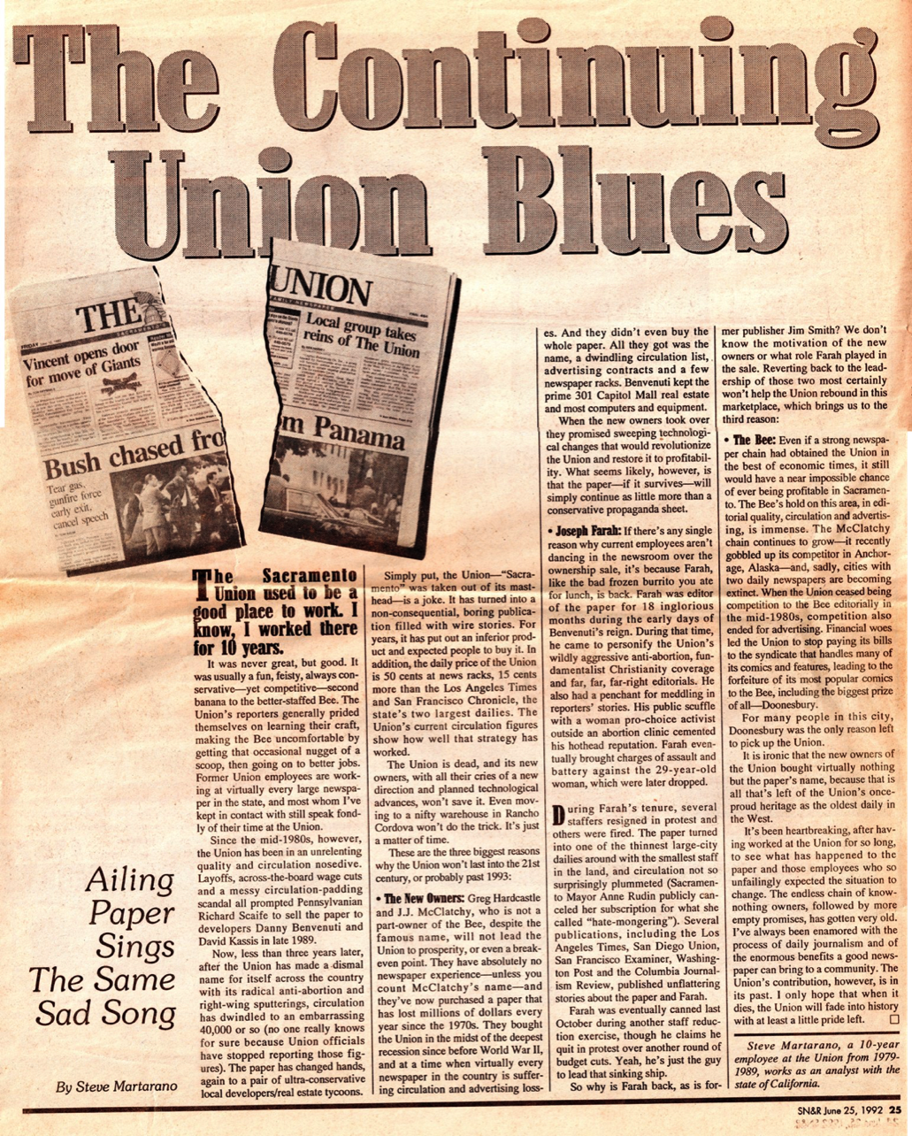 Sacramento Union Blues/Sac News & Review/June 25, 1992