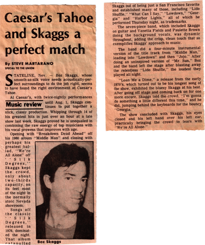 1Boz Skaggs/Caesar’s Tahoe/July 26, 1982