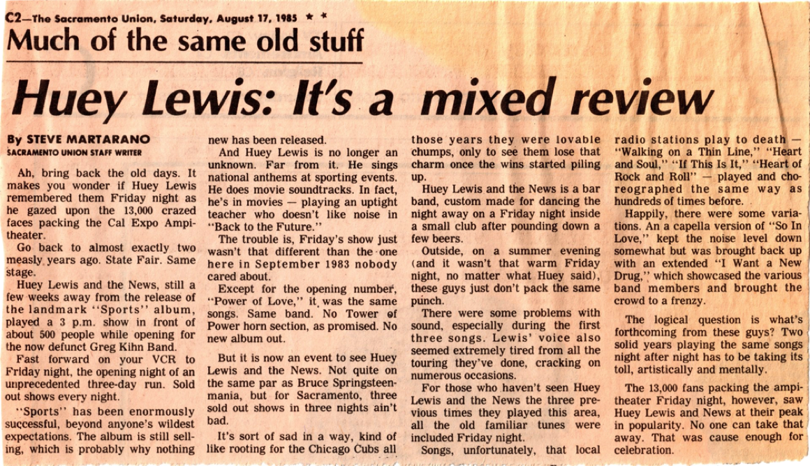 Huey Lewis & the News/Cal Expo/Aug. 16, 1985