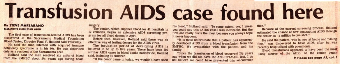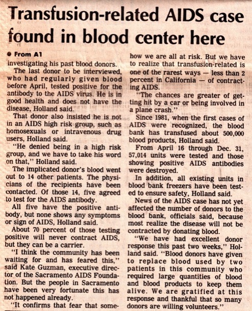 Transfusion AIDS Case Here/Sacramento Union/Jan. 26, 1986