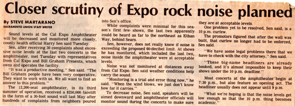 Cal Expo Noise Scrutinized/Sacramento Union/June 1985