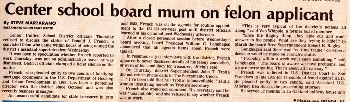Center District Mum on Felon Applicant/Sacramento Union/May 22, 1987