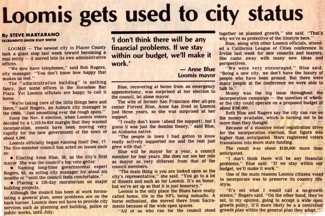 Newly Incorporated Loomis/Sacramento Union/January 1985