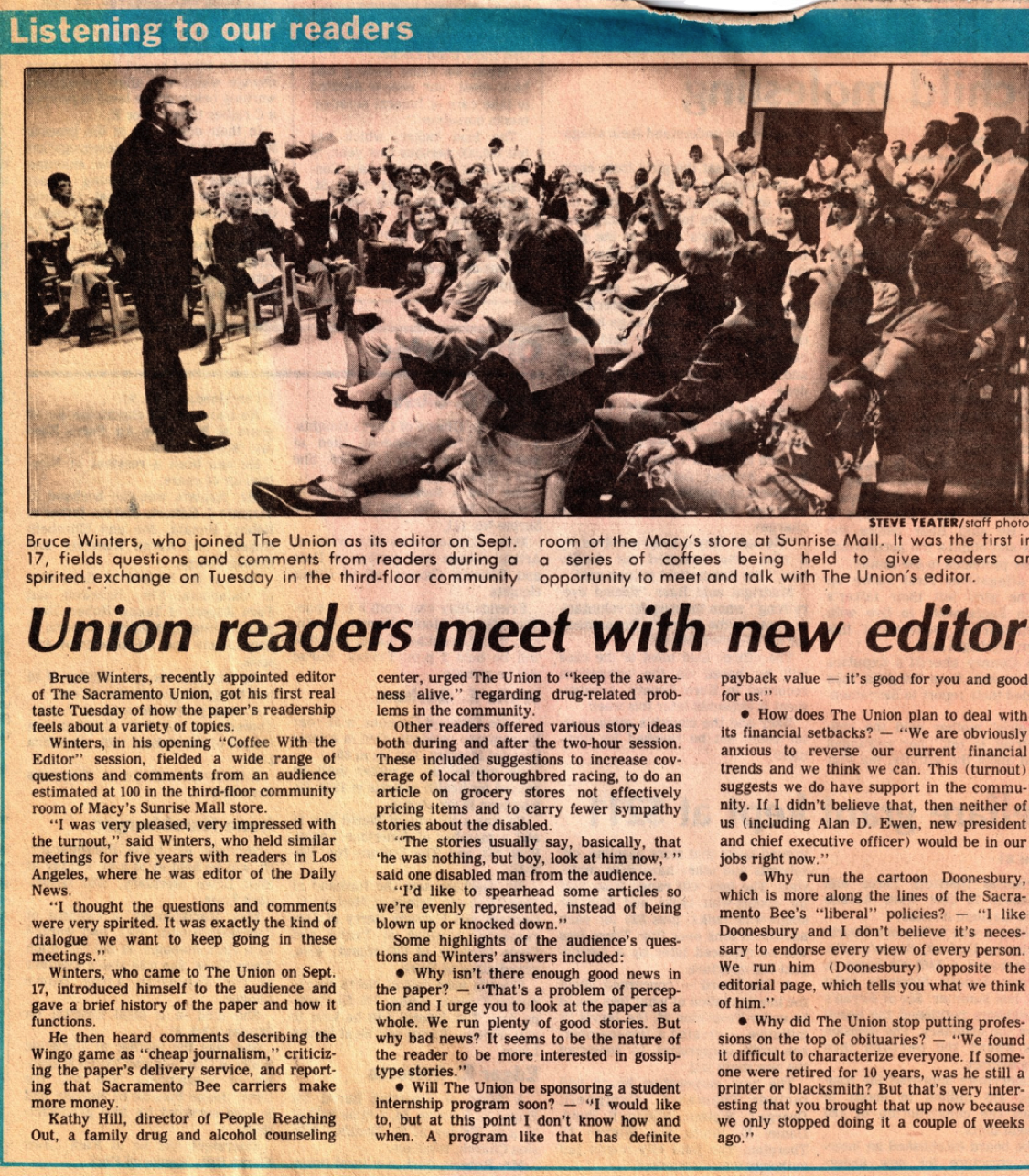 Union Readers Meet New Editor/Sacramento Union/Oct. 10, 1985