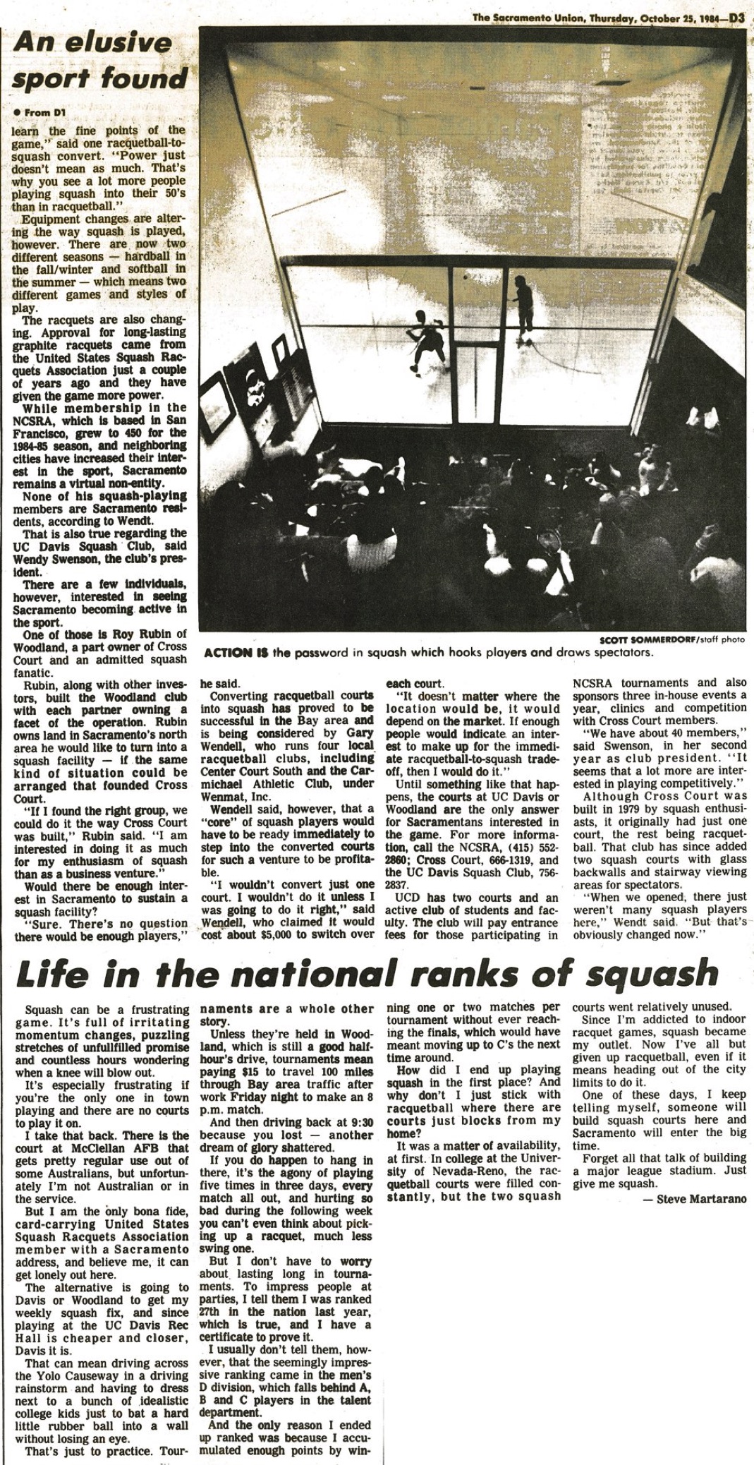 Squash: Courting an Elusive Sport/Sacramento Union/Oct. 25, 1984