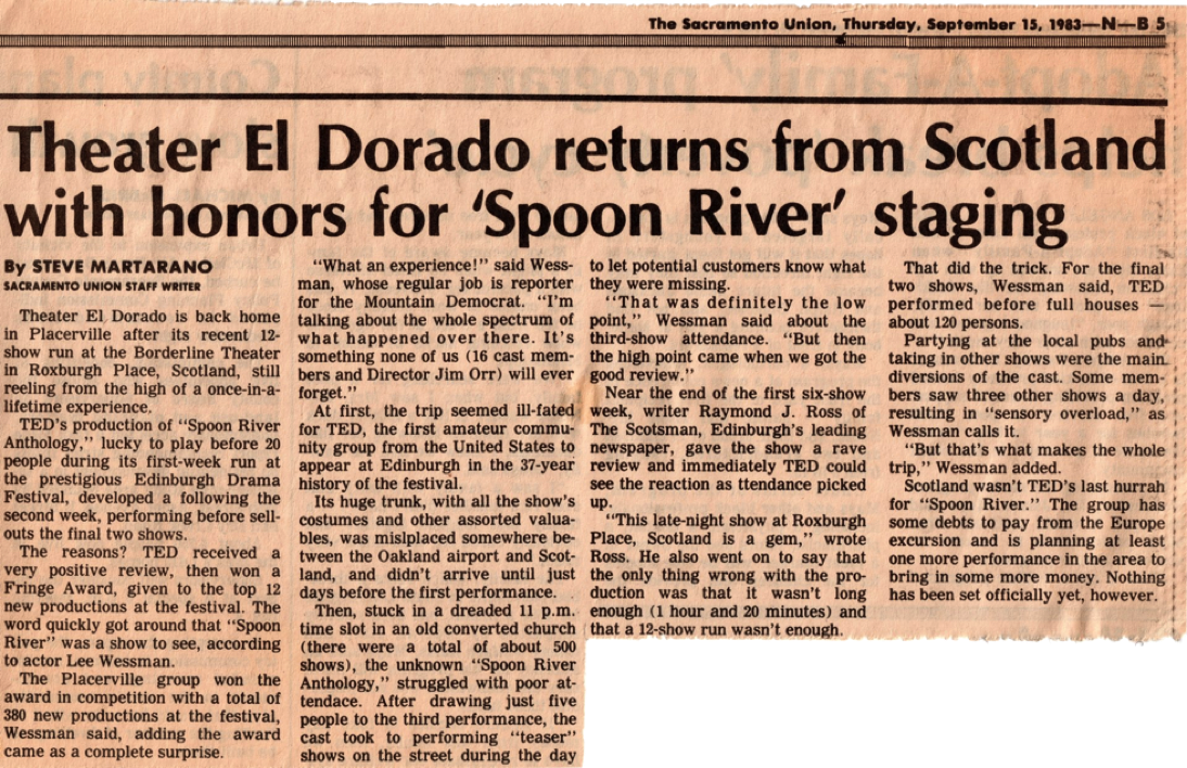 Theatre El Dorado Returns From Scotland/Sacramento Union/Sept. 13 1983
