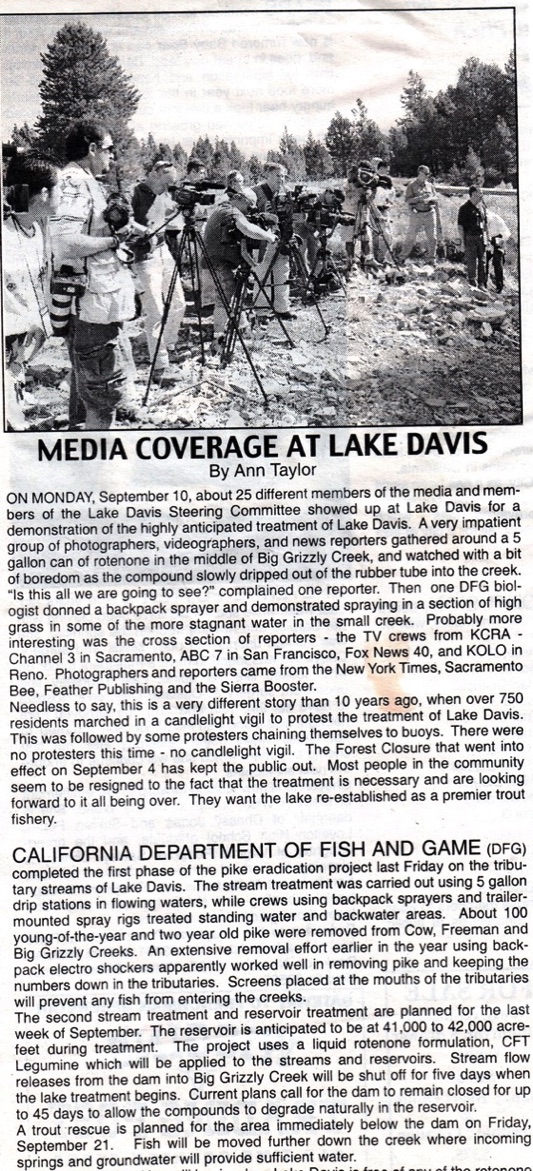 Media Coverage at Lake Davis/Portola Reporter/Sept. 13, 2007