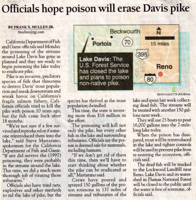 Officials Hope Poison Will Erase Pike/Reno Gazette-Journal/Sept. 25, 2007