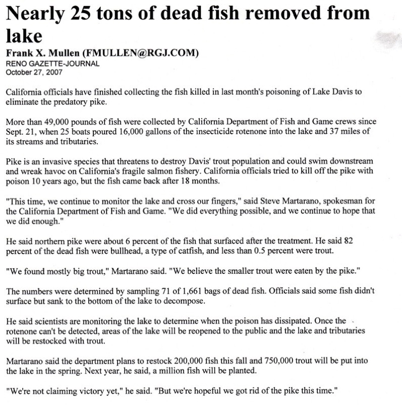 Nearly 25 Tons of Dead Fish Removed/Reno Gazette-Journal/Oct. 27, 2007