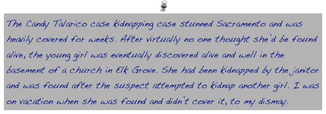 Welcome      About Me      Photography       Assorted Pieces      Puente F Street Murders      Featuring . . .       The Sporting Life