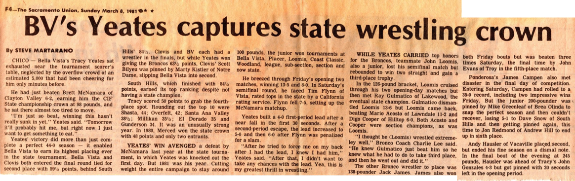 1981 state Wrestling Tourney/Sacramento Union/March 8, 1981
