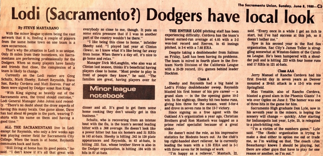 Lodi Dodgers Have Local Look/Sacramento Union/June 8, 1980